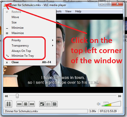 Power Menu is a small free app that adds “Always On Top“, “Minimize To Tray“, “Priority” and “Transparency” sub menus to all top level system menus. So you are able to make more things with power menu. To use Power Menu first download it from here and then install it. Now when you open any window, click on the Top Level Menu at the top left corner to get all functions of it.