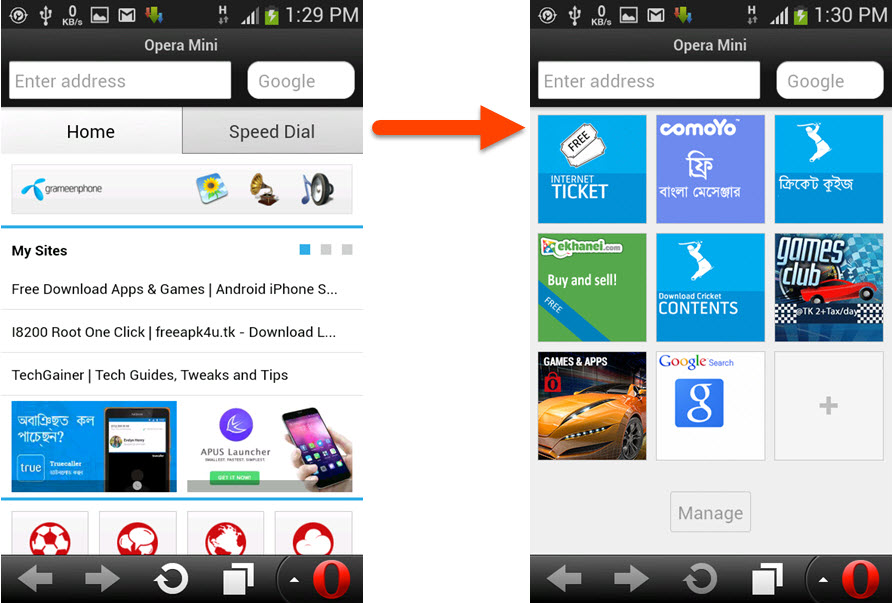 By this way you can remove Opera Mini’s Home tab and only keep the speed dial menu.