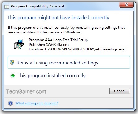 While installing or running programs on windows, you must have seen a notifier prompt with the title “This program might not have installed correctly“. Actually this is a new feature on windows vista and 7 which is triggered by a windows service named “Program Compatibility Assistant(PAC)” when it find problems with programs supporting compatibility on current windows. In the warning window it also prints the message “If this program didn’t install correctly, try reinstalling using settings that are compatible with the version of windows“.