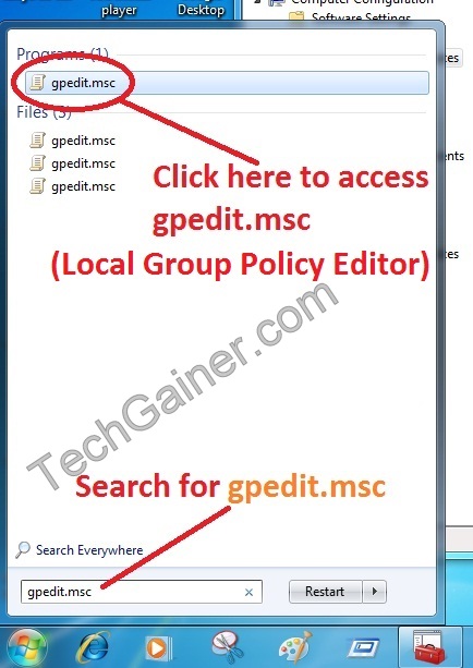 1. Go to Start Menu and search for gpedit.msc from search bar. (I already described how much it’s easy to find out any program on windows vista and 7).