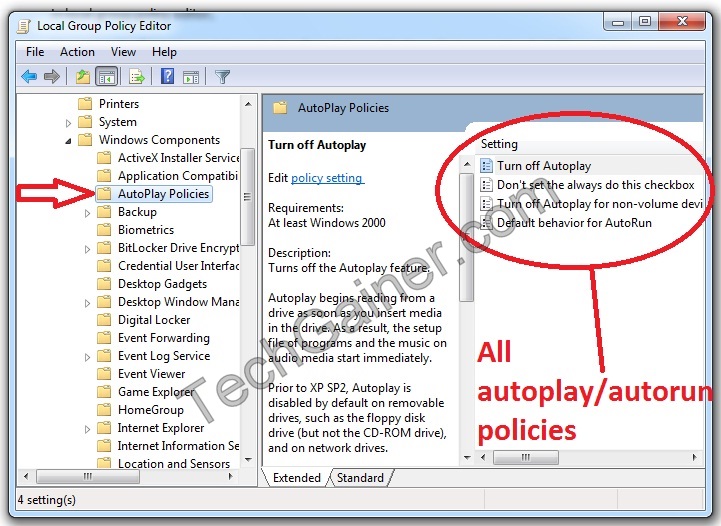 2. Now in gpedit.msc I mean In local group policy editor, go to Computer Configuration > Administrative Templates > Windows Components > AutoPlay policies.