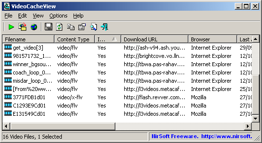 It automatically scans the entire cache of Internet Explorer and Mozilla-based Web browsers (Including Firefox) and finds all video files that are currently stored in it. It allows you to easily copy the cached video files into another folder for playing/watching them in the future. If you have a movie player that is configured to play flv files, it also allows you to play the video directly from your browser’s cache. The software supports the popular browsers Mozilla Firefox, Google Chrome, Opera and Internet Explorer.