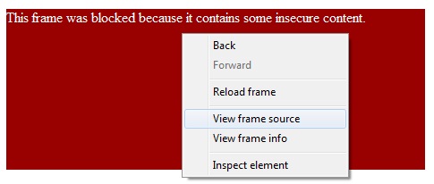 Right click on the frame and click View Frame Source. After loading the frame source, close the frame source page.
