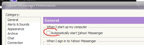 But I strongly suggest you to disable startup from yahoo messenger. Because if you do it using msconfig, yahoo messenger will automatically add itself to startup.