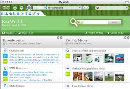 - Everything in Flock comes together in one place: My World. Review your feeds, friend updates, favorites and photo/videos updates.