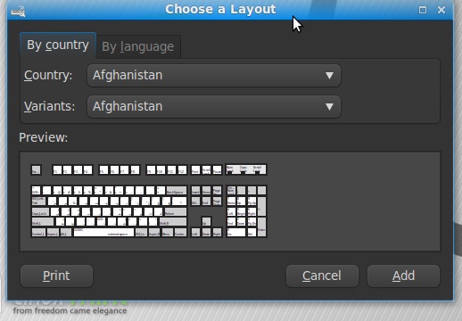 - Select the keyboard for the language or script you wish to use from the “Available Layouts” frame and then press “Add”.